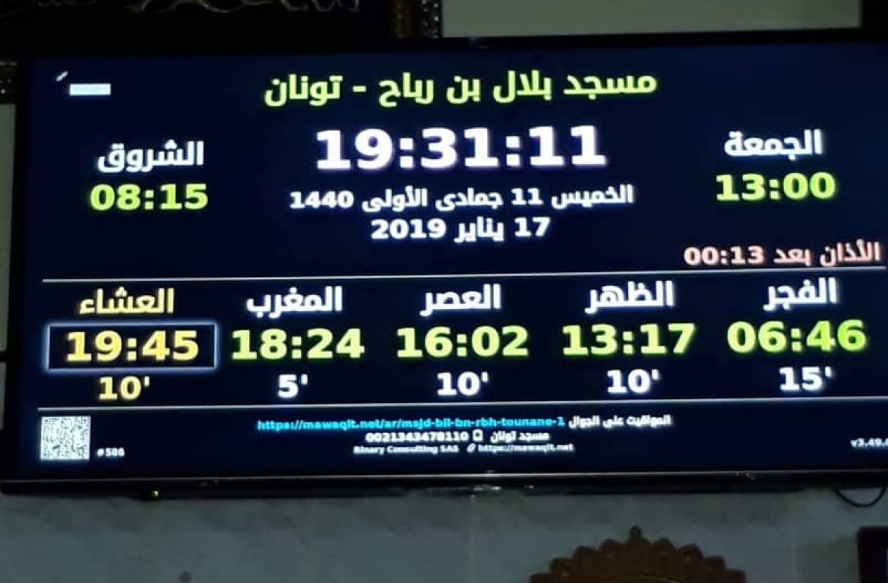 Live digital display screen: مسجد بلال بن رباح - تونان - السواحلية - تونان DinScreen